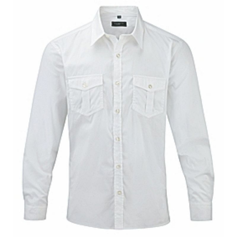 US-BASIC Camisa Twill llisa "Phoenix". Camisa sarja pell de Préssec 100% cotó, Dues butxaques al pit i un a la manga.Botones gravats en color perla.